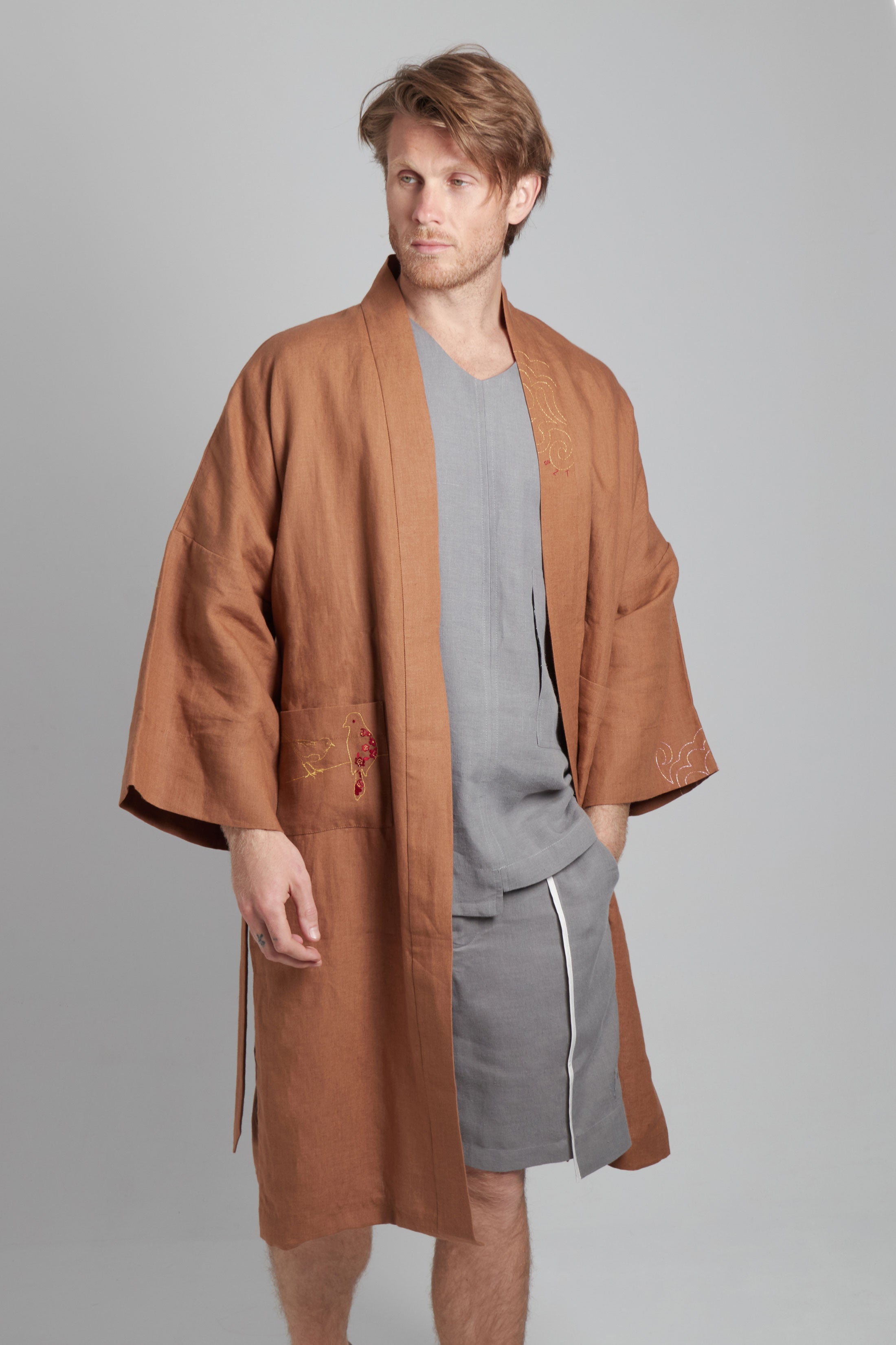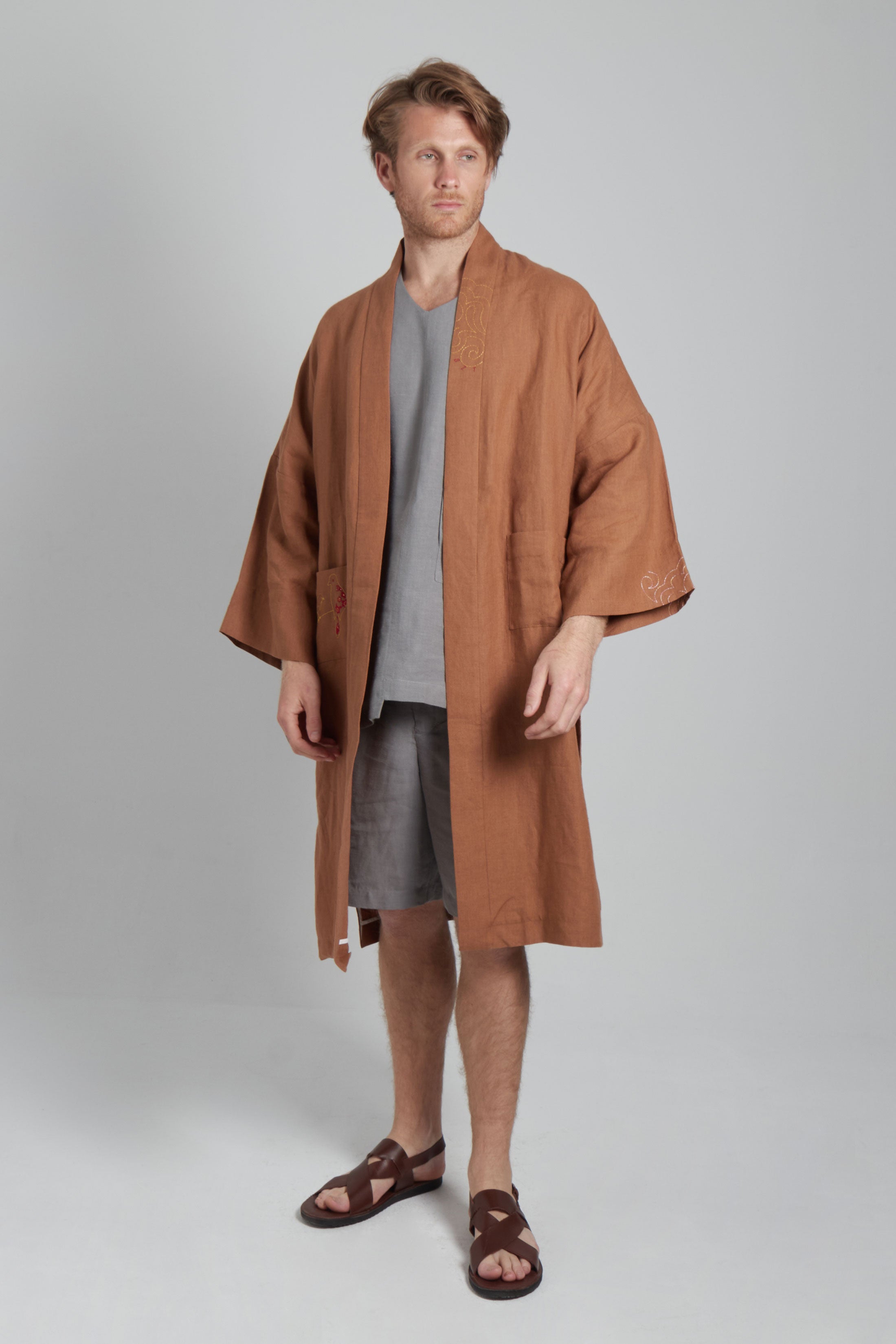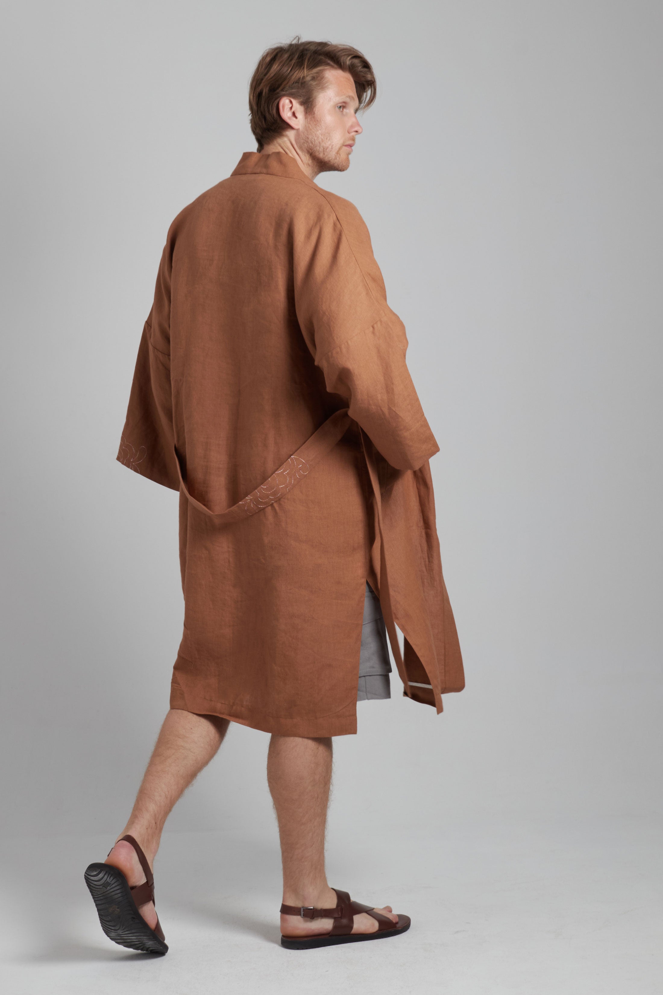 Versailles kimono for men in a cognac brown linen