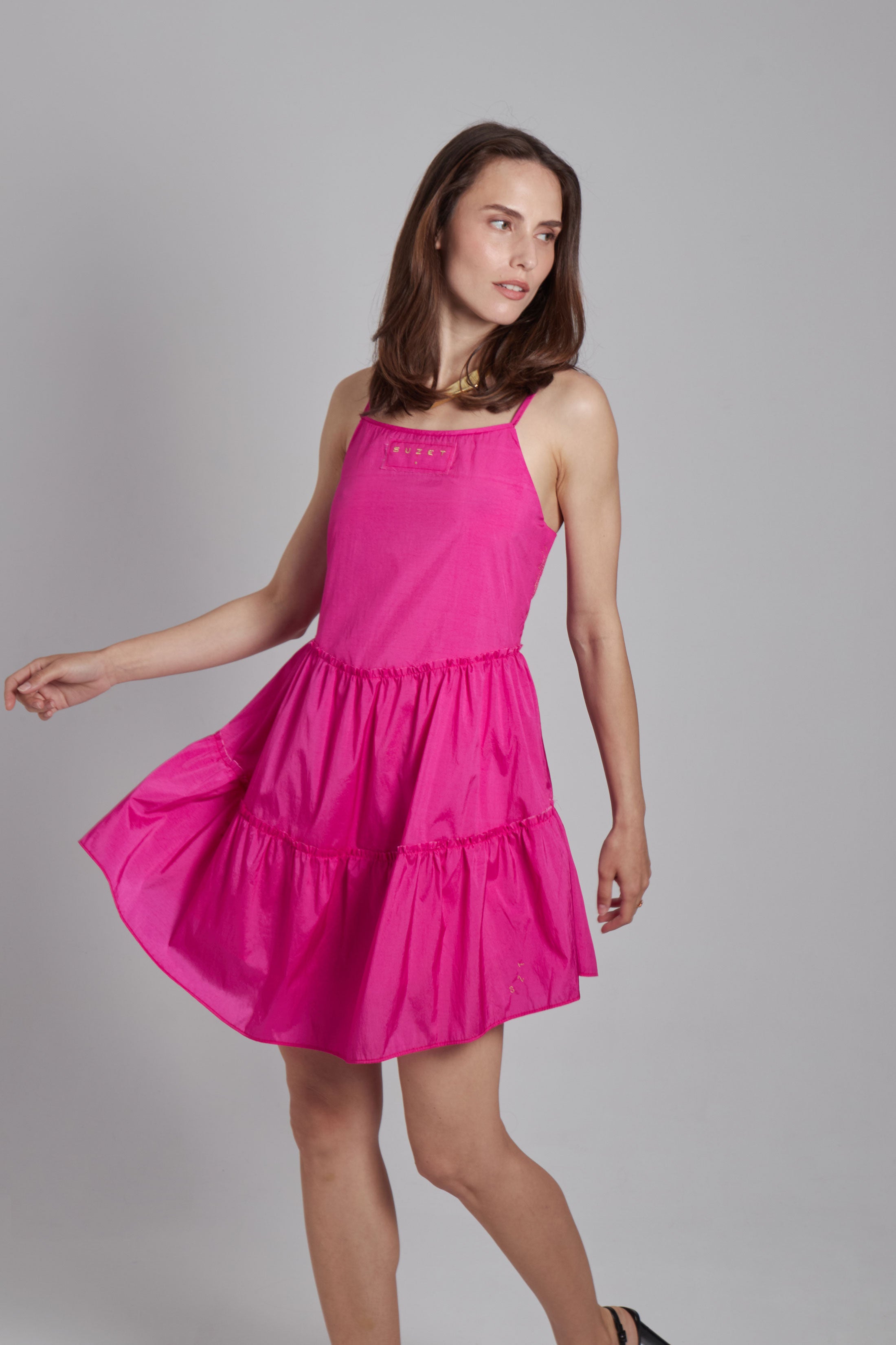 Saint-Tropez dress in a vibrant fuchsia taffetas