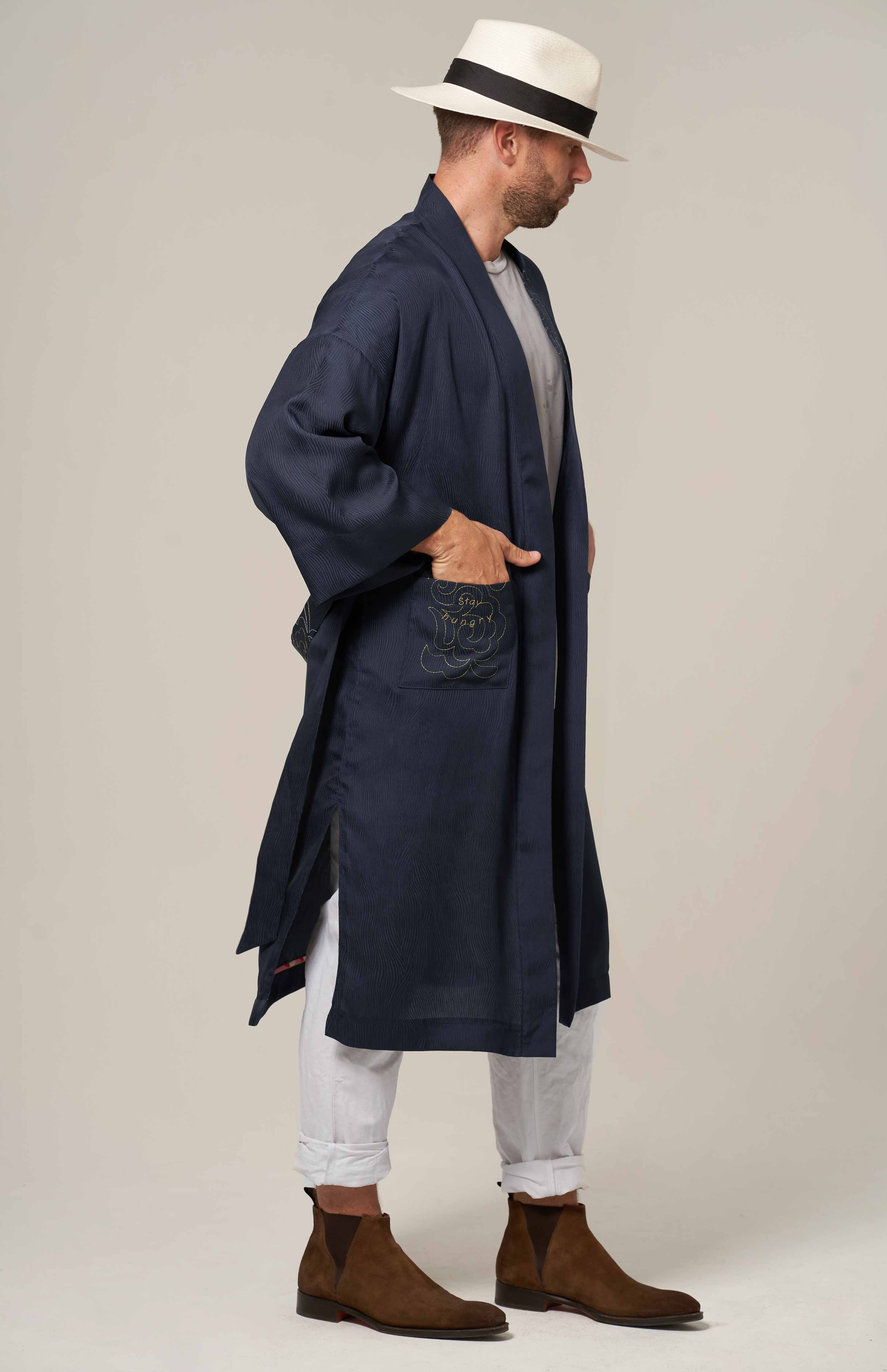 - A fusion between a long jacket, a kimono and a robe to feel comfy and rich